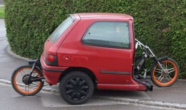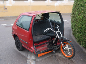 A 17 year old Swiss boy was caught by the police driving his illegal self-made moped car. According to the police, the boy made the car by himself by attaching a moped to the rear part of a Renault car. See this interesting design for yourself.