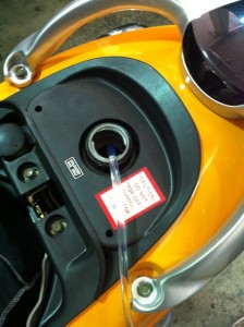Sometimes you might need to drain gas or oil from your scooter. One way of doing this is to locate the drain plug and let the gravity take care of it. To locate your drain plug please check your scooter’s manual.