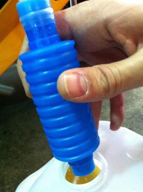 Especially for draining gas, there is an alternative way of doing things. Recently, I had to load my scooters to a moving truck for a long distance move. And liquids and flammables were not allowed on the truck, so I had to drain the gas from the scooters. A cheap hand pump (for only a few bucks) I found at a local auto parts dealer did the job. It looked like this.