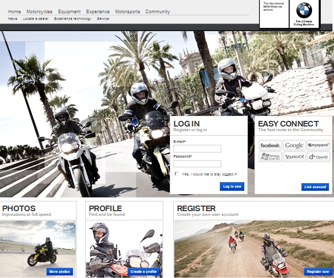 BMW has recently launched an online community for motorcyclists. The community is accessible through a web browser just like any other social networking site. The new website allows riders to share their riding experiences, plan motorcycle tours and meet friends. All you need to do is to register, create a profile and you are ready to roll! The good news is that this new social networking site is not limited only to BMW riders, independent of what brand your ride is you can register to the site, find your friends, make new ones, arrange group rides, share your experiences, trip pictures and recommendations. To be part of the community, just go here: http://community.bmw-motorrad.com/en/